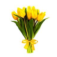Букет из одиннадцати желтых тюльпанов отлично подойдет как приятный жест, презент или извинение. Желтый цвет олицетворяет яркость, праздничность, солнце и счастье. Такие цветы дарятся любимым женщинам, друзьям и приятелям, которых хочется немножко порадовать, поднять настроение. Согласно языку цветов, желтый тюльпан – это лучший способ выразить восхищение.